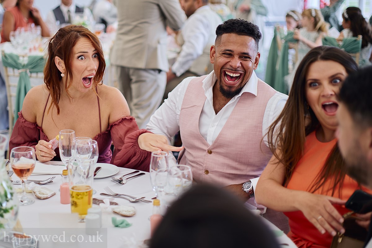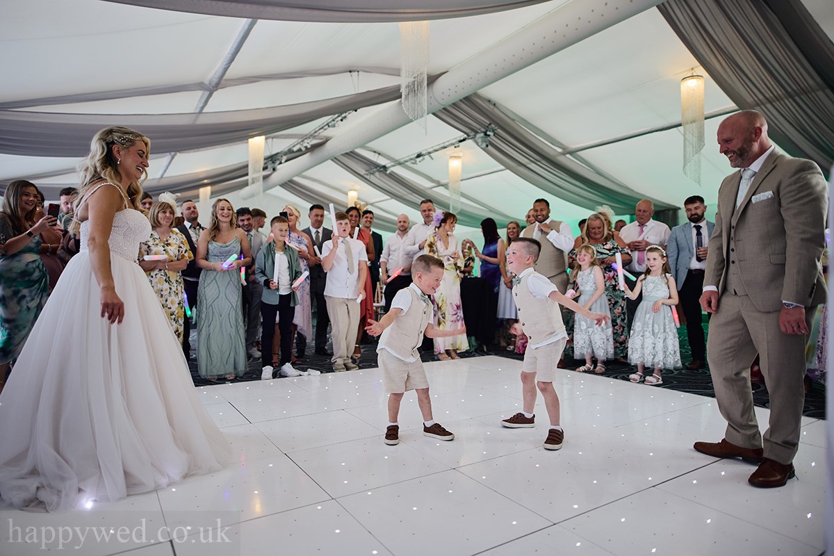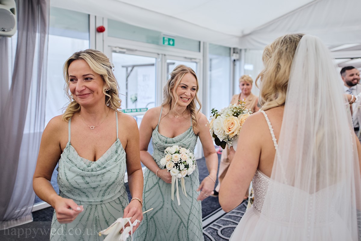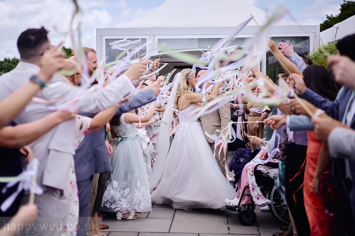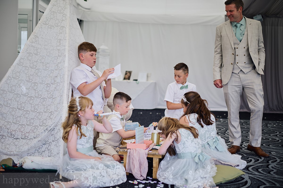The windy weather proved ideal for magic wand photos, a better choice than confetti, which Maria made herself. The chilly wind also didn’t stop us from taking group shots outdoors before the wedding breakfast. The bride and groom made an unforgettable saxophone-accompanied entrance to their wedding breakfast.