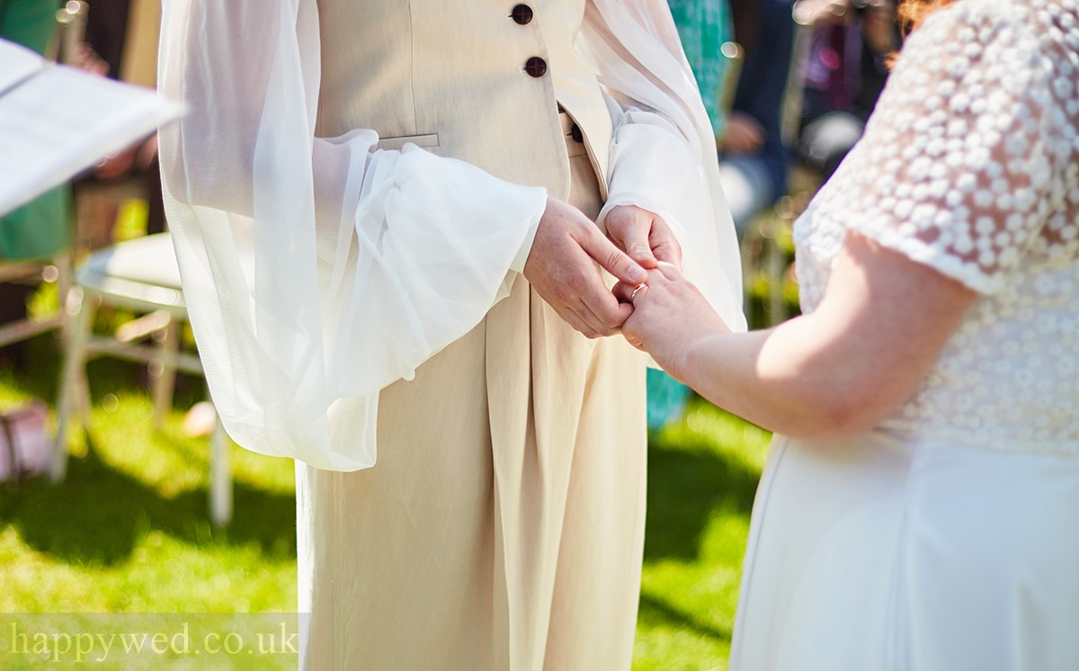 Sophie and Grace’s wedding ceremony was held in the Great House hotel’s beautiful garden. It was a lovely May day with the sun shining brightly. By the way it was the first time I photographed an outdoors wedding ceremony at the Great House hotel in Bridgend, as all the previous couples I photographed there had an indoors ceremony: