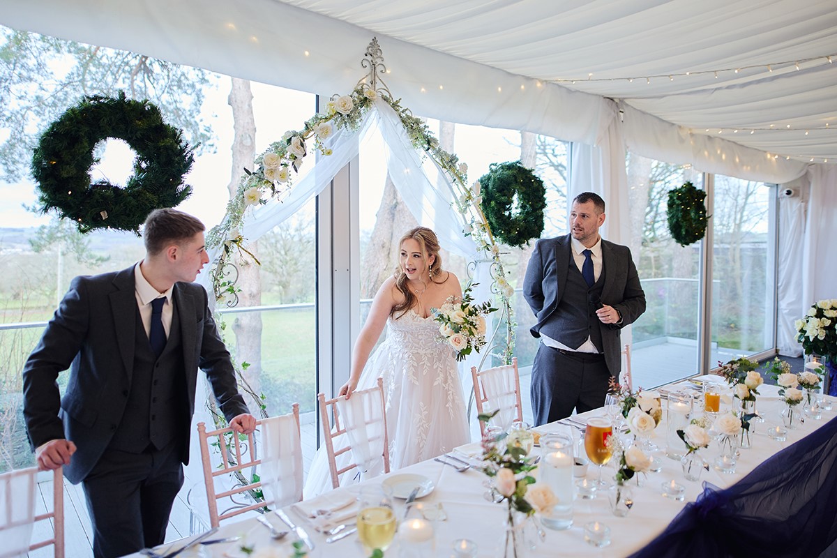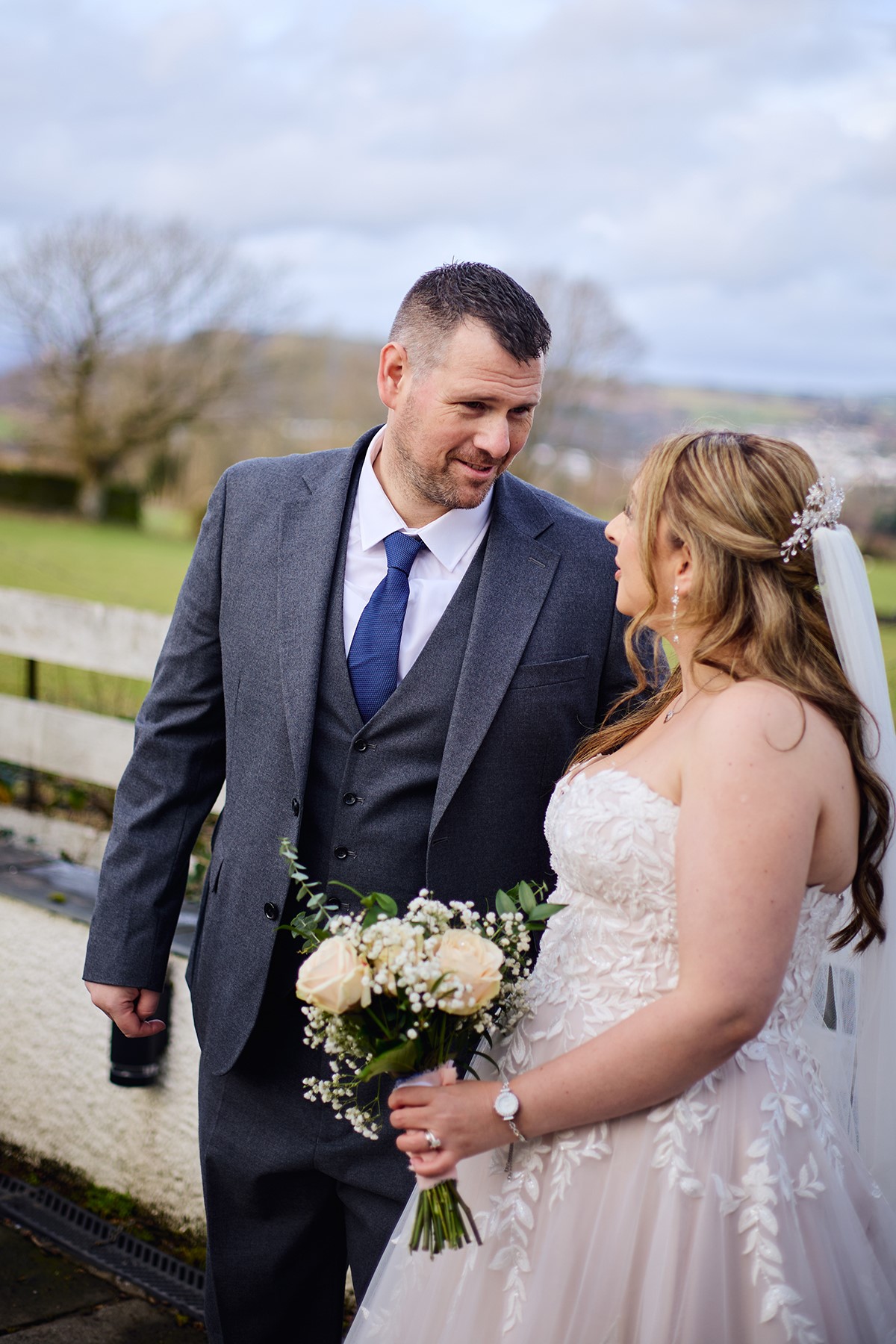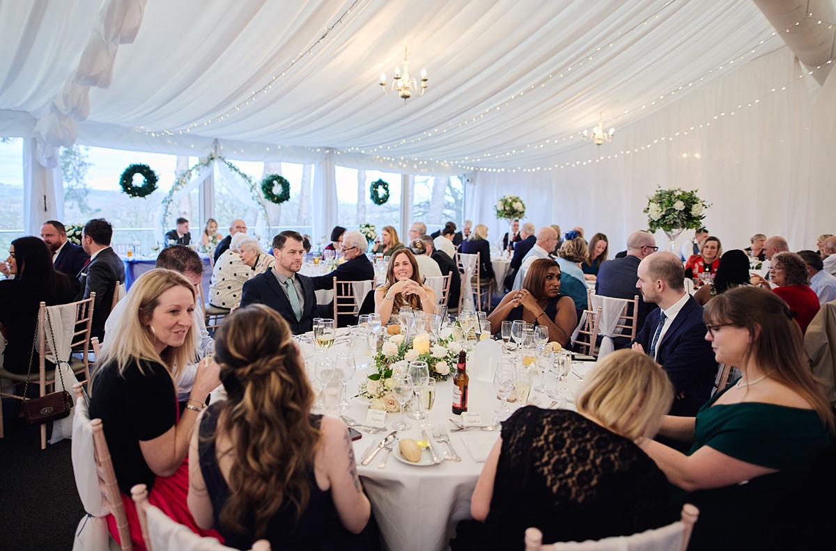 Eleri and Graham celebrated their stunning winter wedding at Llechwen Hall Hotel this past December. Though the weeks surrounding their big day were defined by heavy rain and local flooding, Saturday arrived as a perfect, dry oasis. It was a truly lovely day that allowed the couple to enjoy the beauty of the season without the damp, making their celebration at the Llechwen Hall even more memorable.