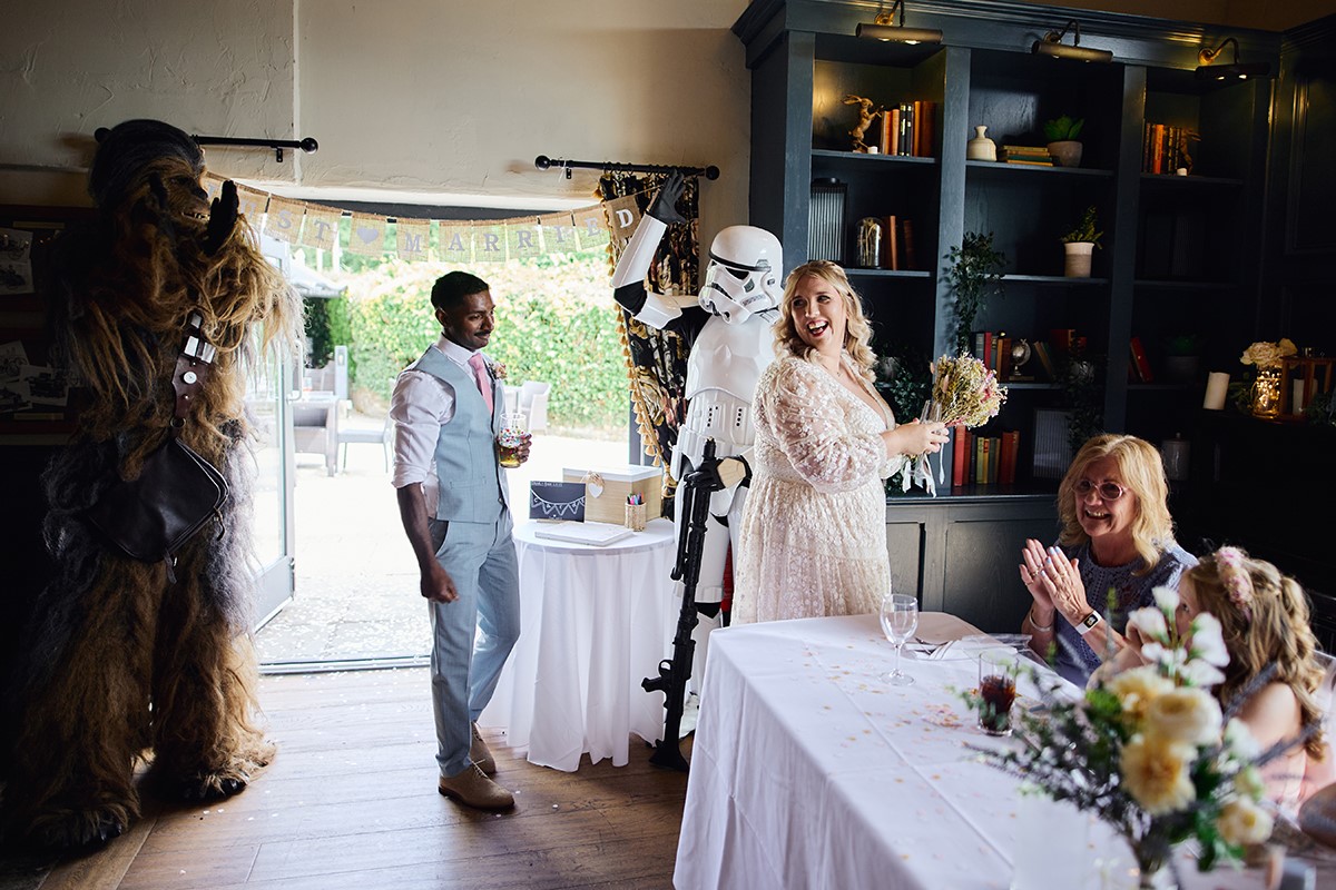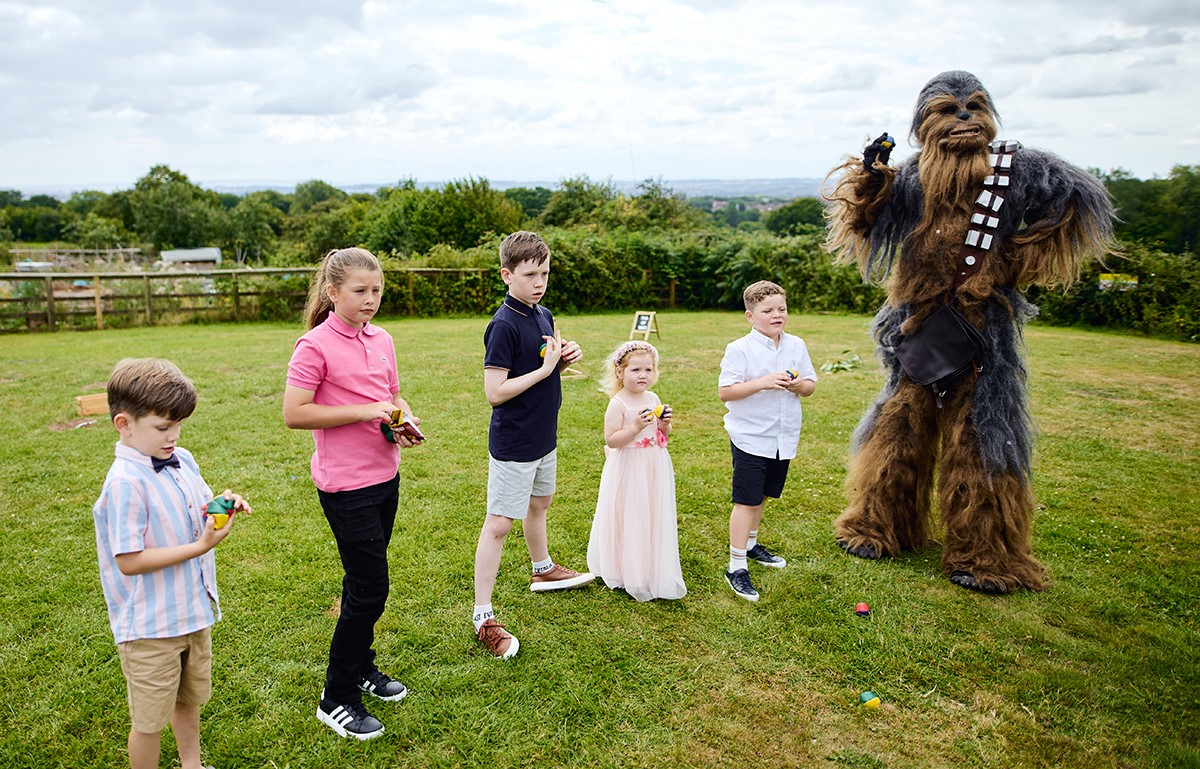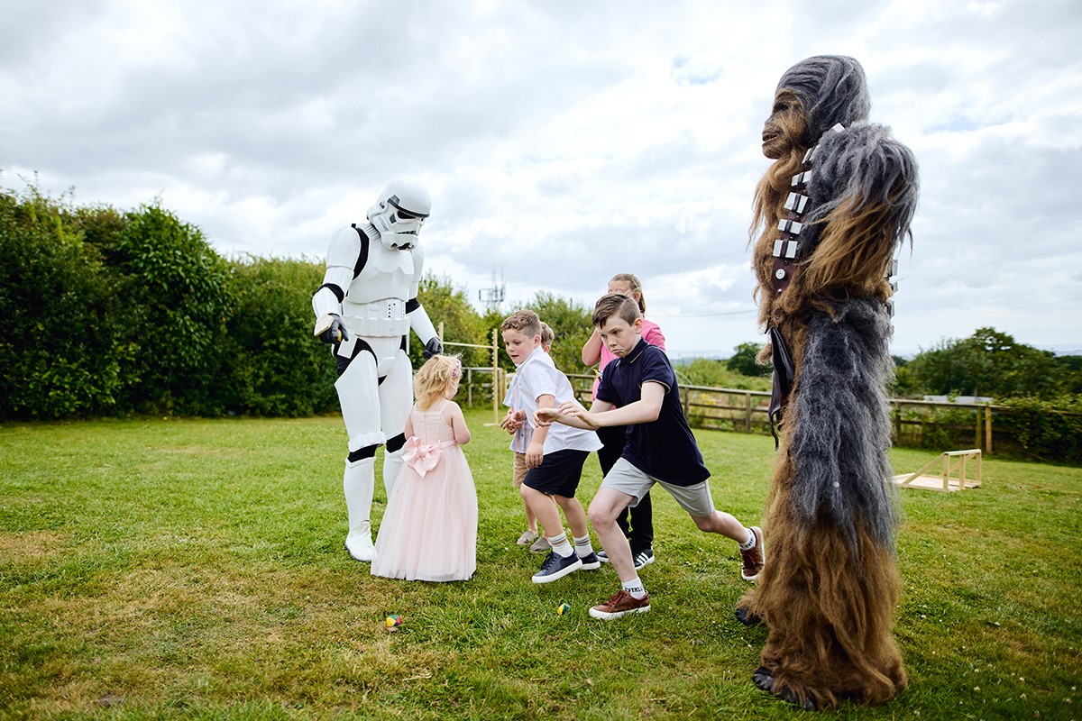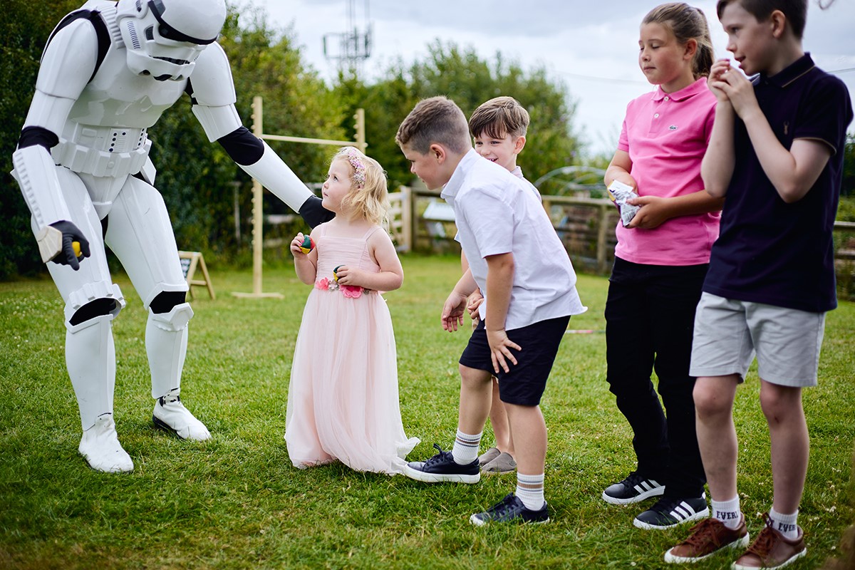 It was a relaxed and fun-filled day. Star Wars mascots entertained both kids and adults, setting a playful tone before everyone enjoyed a fantastic hog roast buffet. This laid-back vibe led to a ton of great candid shots, and I was thrilled to get this lovely review from the bride: