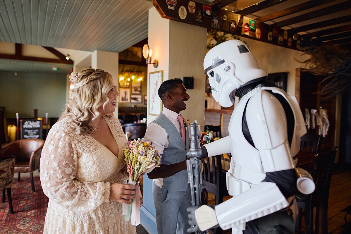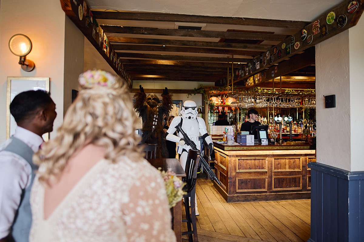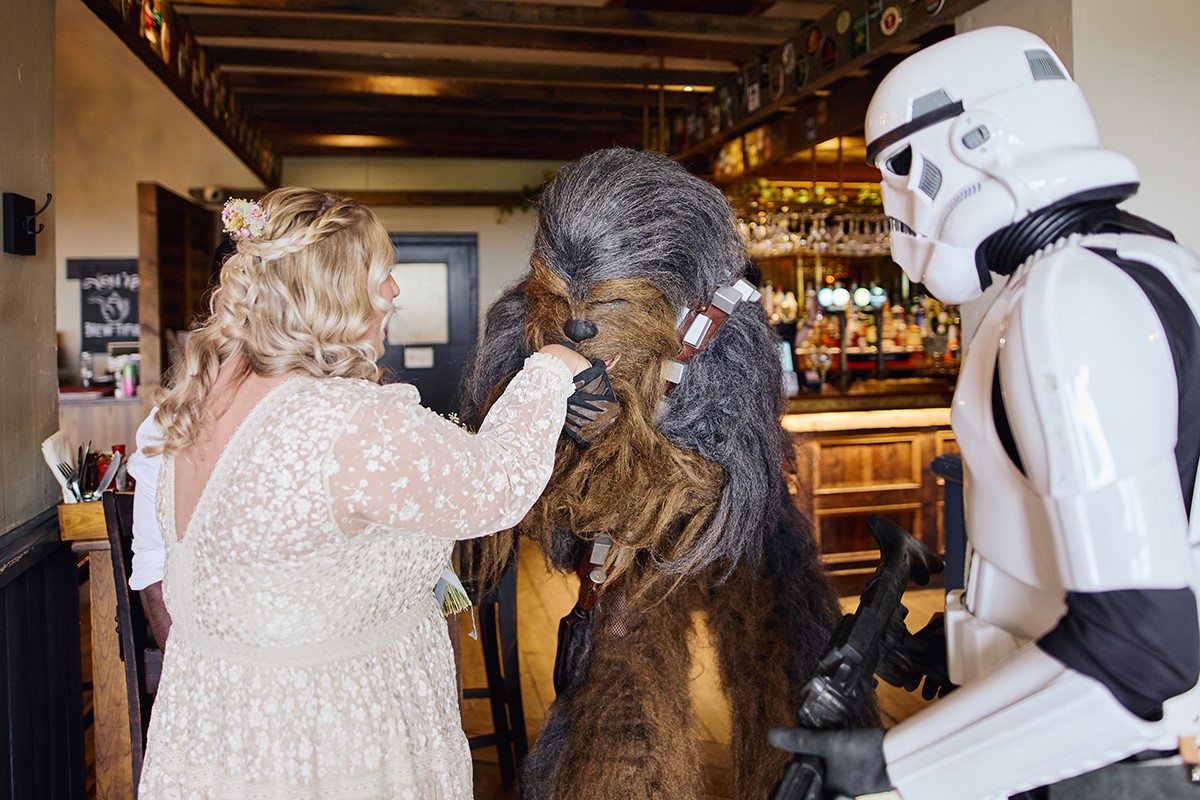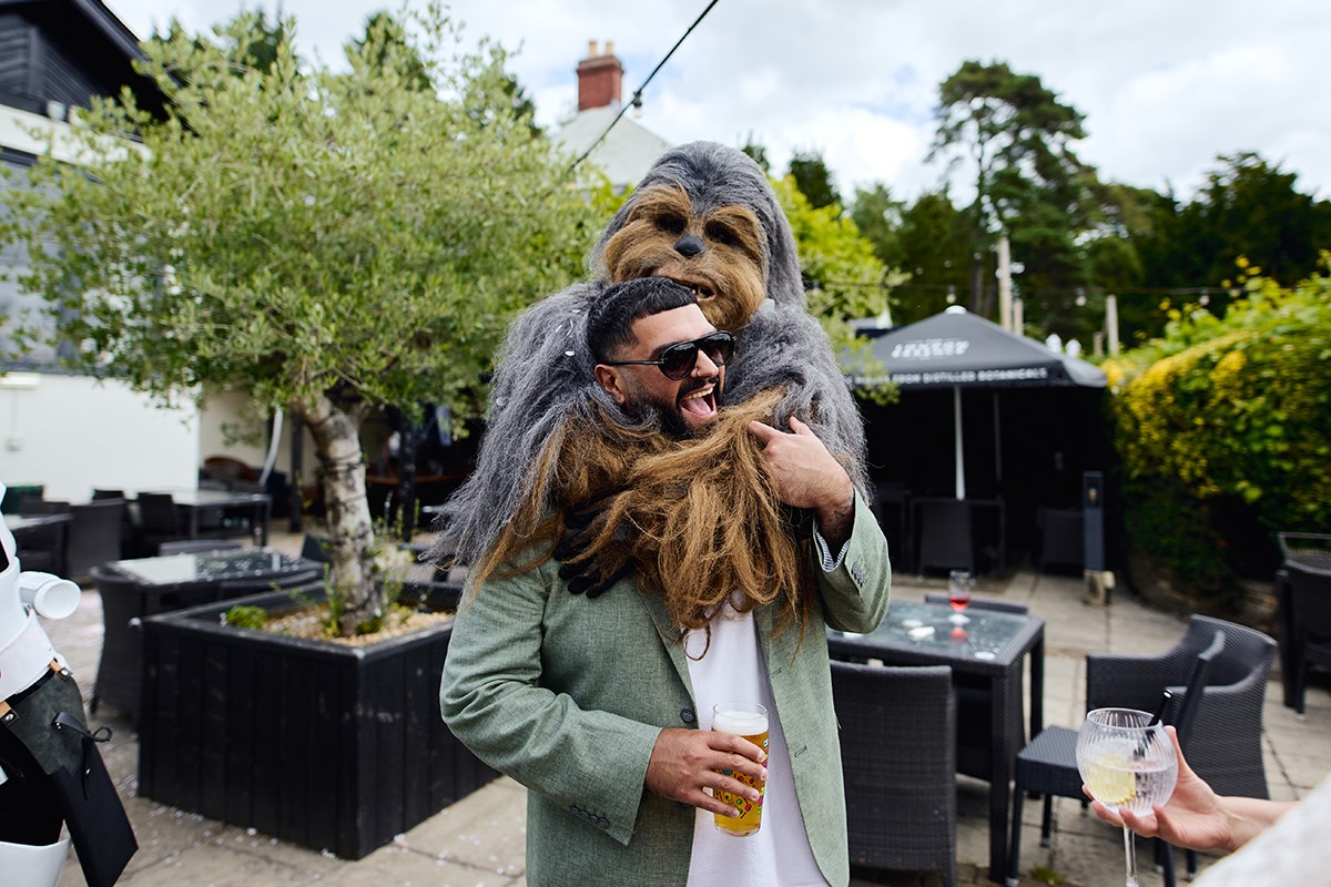 It was a relaxed and fun-filled day. Star Wars mascots entertained both kids and adults, setting a playful tone before everyone enjoyed a fantastic hog roast buffet. This laid-back vibe led to a ton of great candid shots, and I was thrilled to get this lovely review from the bride:
